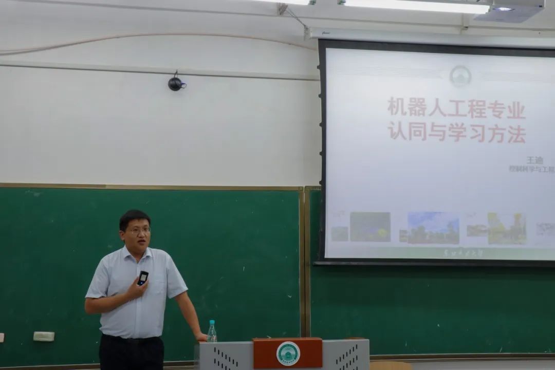王迪老师详细解读了机器人工程专业的特色、核心技术、学习路径以及就业方向。他强调,机器人工程专业作为一门新兴专业,学生需具备扎实的控制、电子、计算机基础知识,以及强大的软、硬件实践能力。王老师通过案例分析,展示了机器人工程在现实生活中的应用,同时强调了创新思维和团队协作在专业学习中的重要性,激发了新生们对专业的热情和对未来职业的期待。