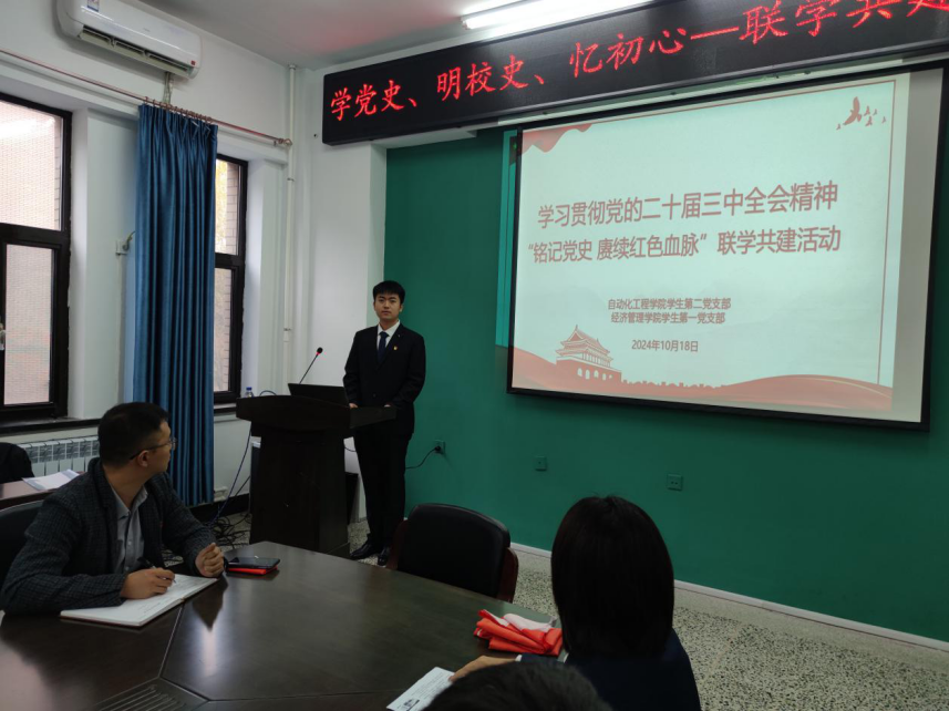 学生第一党支部于三教D202联合开展“学党史、明校史、忆初心”联学联建活动,本次活动由经济管理成人H漫