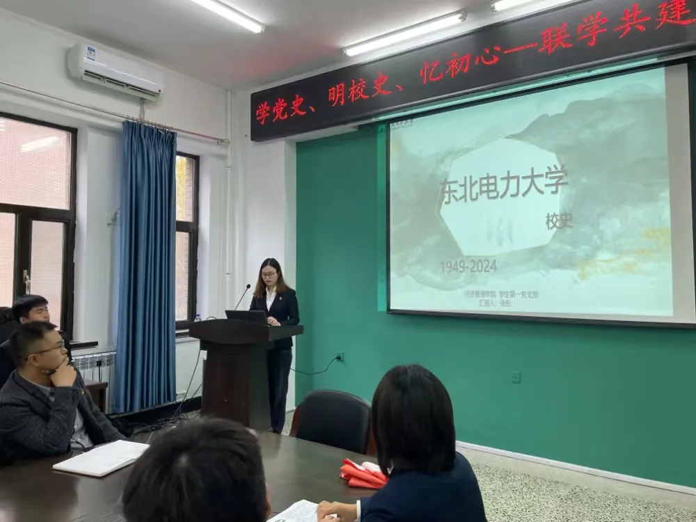 党员代表张彤的讲解下,东电在东北全境解放之后百业待兴之时的成立以及在之后风雨里成长的历程一一呈现在每位党员的眼前,每一个成就,每一次获得,都包含着历史的意义。仿佛又走进了东电那段辉煌绚烂、令人回肠荡气的历史。对凝固历史的见证很是振奋人心,看到这些,全体学生党员内心充满震撼与深深的自豪。通过本次对校史的进一步了解,全体党员一定会在先辈殷切的注视下踔厉奋发,共筑青春梦想。