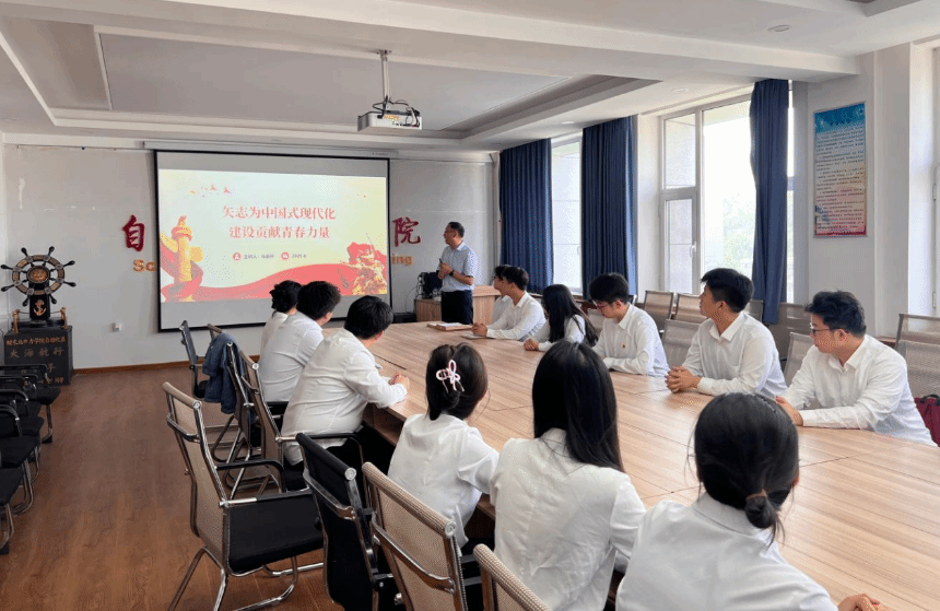党委书记马崇升以《矢志为中国式现代化建设贡献青春力量》为题讲授学习教育专题党课,党课由学办主任李丹主持,成人H漫