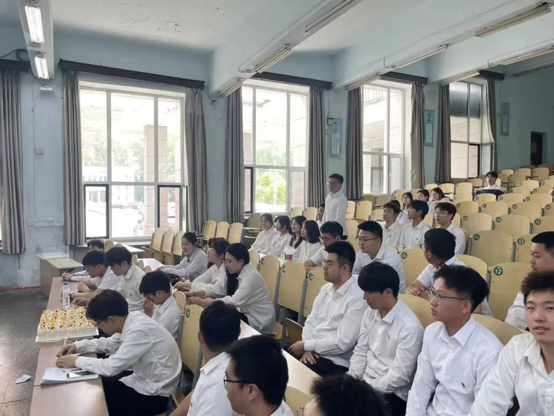 毕业生党员代表刘坤、王凯生、曹宇、逯帅男等同志分享了自己的入党初心、毕业感想,并对离校后继续发挥党员的先锋模范作用进行表态。在校生党员代表为毕业生党员送上准备好的蛋糕,与毕业生党员共同记录这难忘时刻。