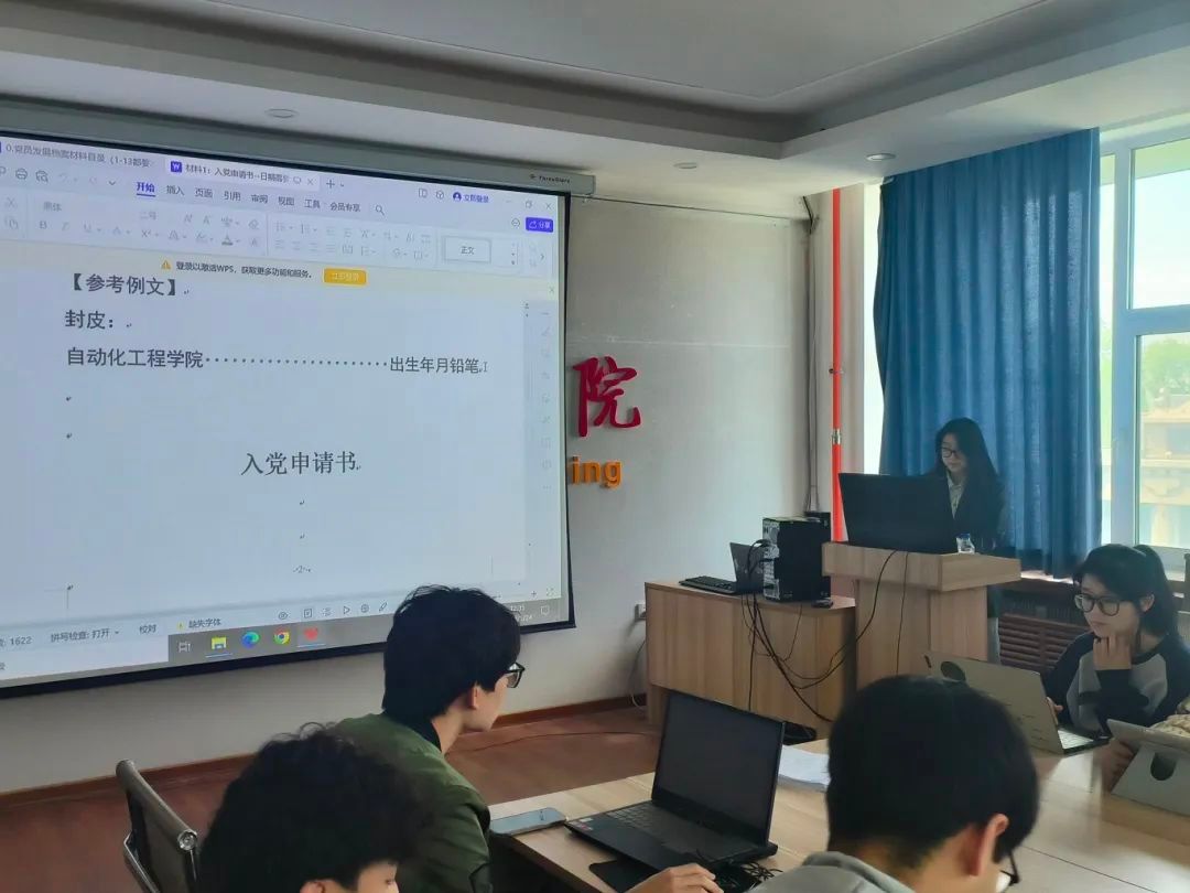 会议期间,李瑾瑜同学针对发展党员材料的相关内容进行了详细讲解,特别是对于培养考察表、入党申请书以及思想汇报的格式进行了规范。她对填写时需要注意的一些细节进行强调,同时对发展对象们提出的问题进行了解答,保证了发展工作的严谨性。