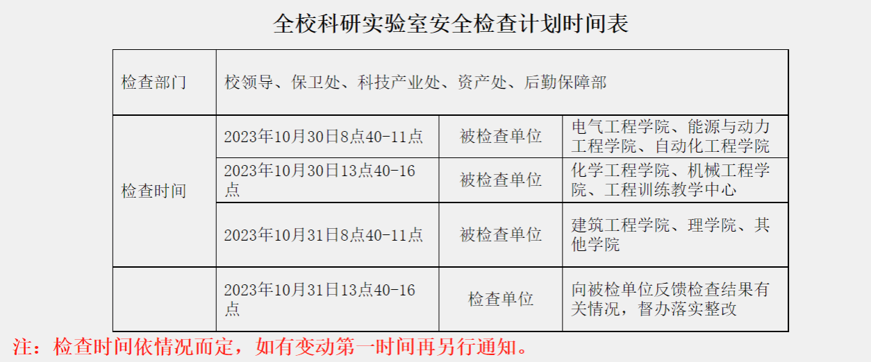 、各科研实验室于10月29日前完成自查工作,并形成自查台账。